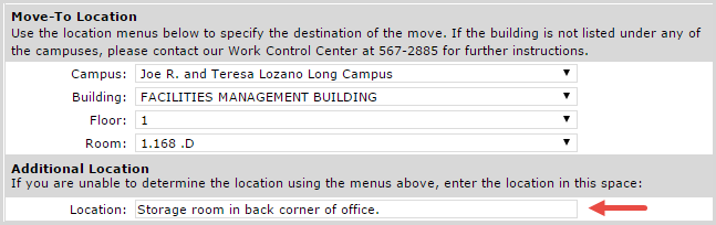 Once you have entered the detailed instructions, you will then be required to fill out the section labelled 'Move-To Location' to specify where the items will be going.