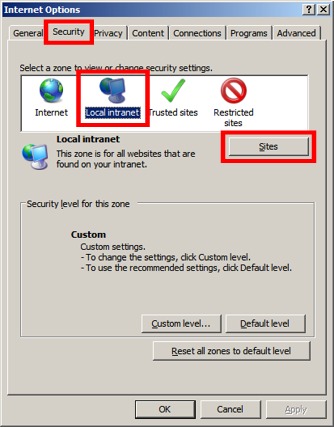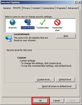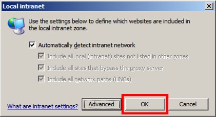 5. You will be taken back to the 'Local Intranet' dialog. Click the 'OK' button.